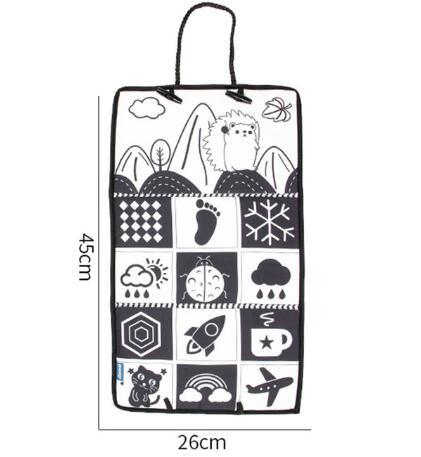The contrasting black-and-white patterns aid visual development.